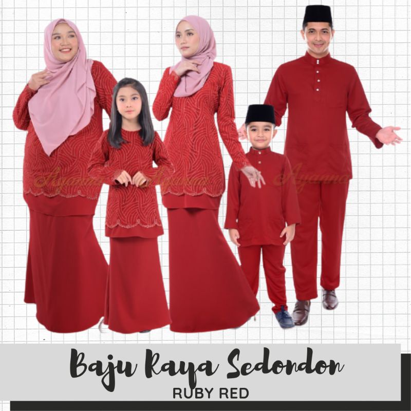 Baju raya sedondon tema warna ruby red merah cili set family ayah ibu anak baby baju kurung baju melayu kurta . Harga malam raya baju raya butik quenella hq . Baju kurung riau songket lana red chili merah cili as syahid collection.